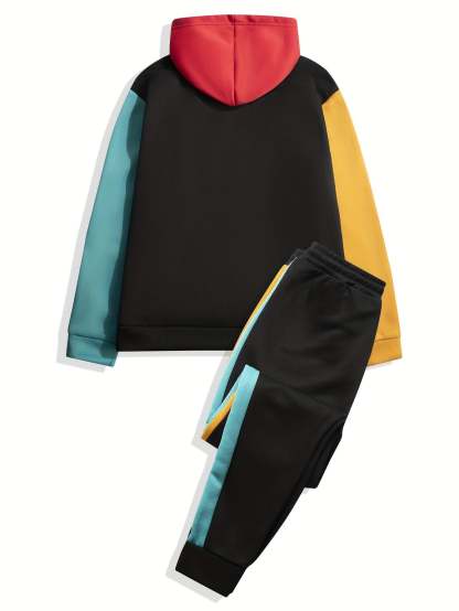 2025 TNF-Color Block Suit Drawstring Pocket Hoodie Set